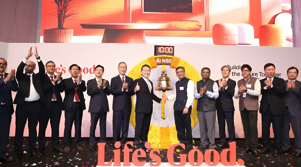 LG Electronics India made a stunning entry into the Indian stock market, with its shares listing at a 50 percent premium over the issue price on both the NSE and BSE. On its first trading day, the stock opened strong and closed at 1,682.8 rupees per share on the NSE, marking a 48 percent gain from the IPO price.